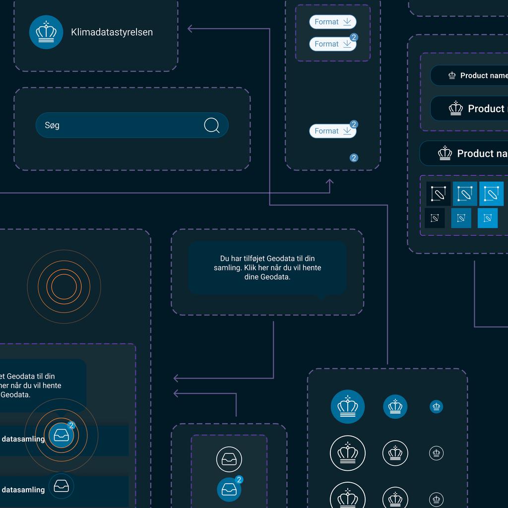 Udvikling af UI elementer til at navigere imellem flyfotos taget fra alle fire verdenshjørner. Klimadatastyrelsen